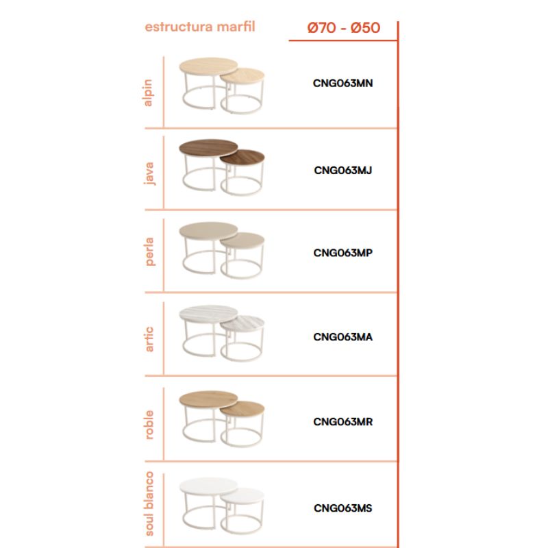 La cubierta de cada mesa está elaborada con tablero de 15 mm de espesor en melamina de alta calidad, ofreciendo una superficie resistente, liviana y de fácil mantenimiento. Su acabado texturizado aporta calidez visual y un tacto agradable, elevando el nivel de cualquier ambiente donde se coloque.