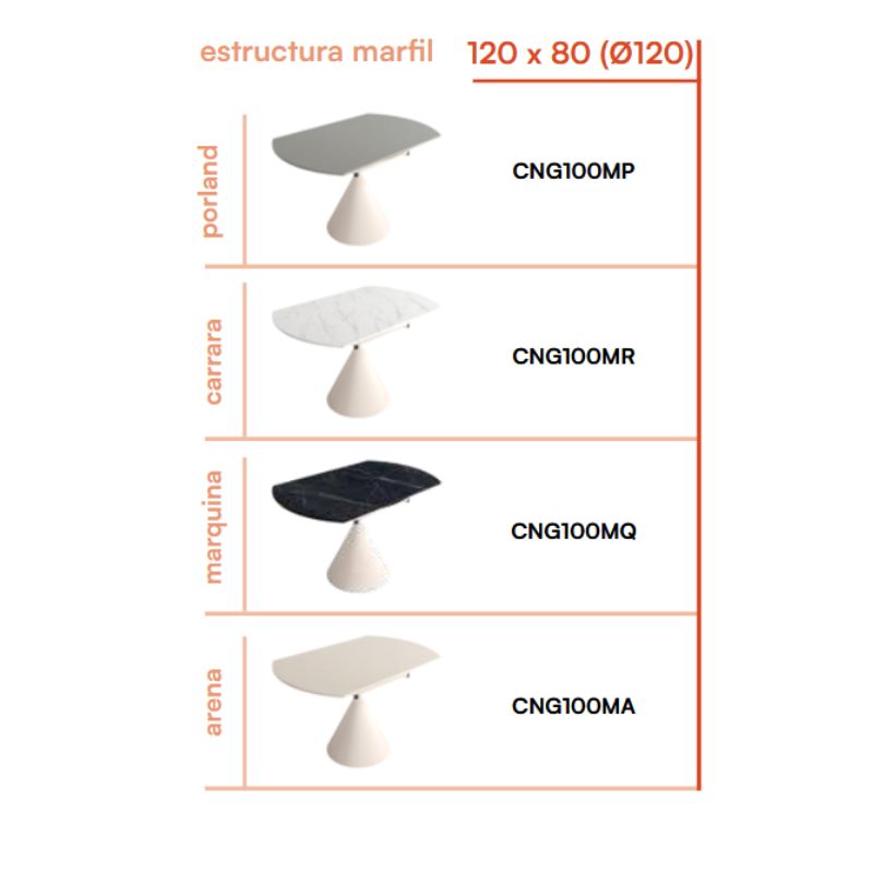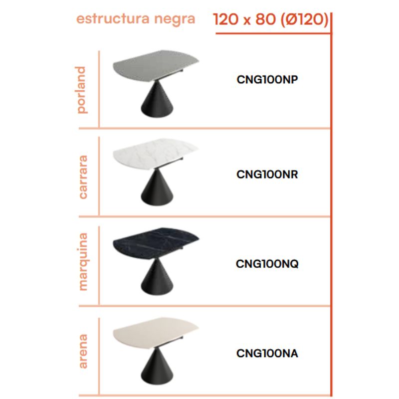 Su estructura metálica —disponible en sofisticado negro mate o marfil satinado— aporta una base sólida, estable y visualmente impactante. Esta estructura no solo ofrece una resistencia superior, sino que también actúa como un elemento decorativo de alto nivel, aportando fuerza y estilo contemporáneo a tu comedor.